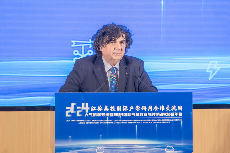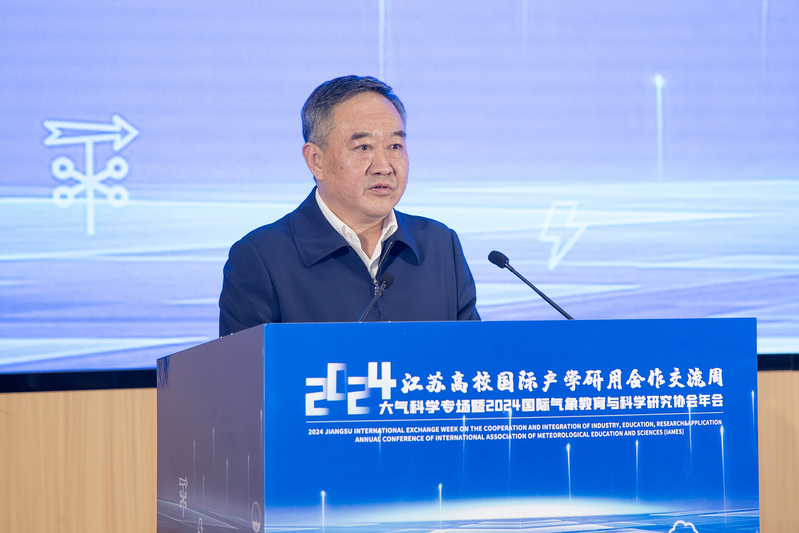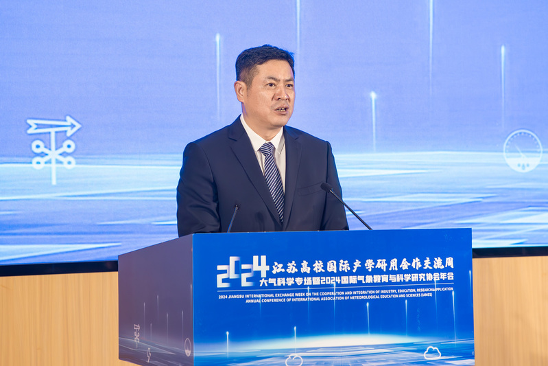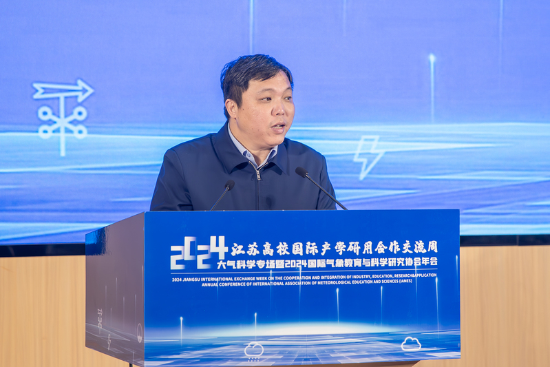 在随后的大会主题报告环节,英国拉夫堡大学教授、英国皇家工程院院士Qiuhua Liang 、波兰科学院院士、欧洲科学院院士Zbigniew W. Kundzewicz相继作精彩报告。当天上午,还举办了2024江苏高校国际产学研用合作交流周开幕式,我校校长陈海山出席。交流周活动由包括我校在内的21所省内高校共同承办。我校活动期间还将举办气象信息技术与人工智能学术论坛、气象产业和气象服务产业论坛、中外研究生学术论坛,为与会者带来一场精彩纷呈的学术盛宴。