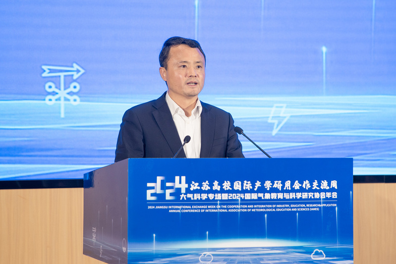 陈海山在致辞中表示,今年南信大第二次承办大气科学专场,同时恰逢IAMES成立四周年,确是一个值得庆祝的时刻。近年来,学校牵头成立IAMES,积极承办江苏省国际产学研用合作交流周气象科技论坛,通过学术活动与教育合作提升了国际影响力。他希望此次大会能够为气象领域的专家学者们提供一个交流思想、激发灵感、增添创新动力的平台。南信大将与各方共同努力,推动大气科学领域的研发与创新,共同构建多元参与、协同高效的产学研用新格局。