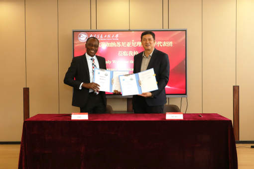 会上,陈海山和Kwadwo Adinkrah-Appiah共同签署了2+2联合办学项目合作协议。国际教育学院、电子与信息工程学院、计算机学院(网络空间安全学院)与代表团一行进行了充分交流。双方就“2+2”双学位项目涉及到的课程对接、学制费用、管理方案等情况进行探讨。