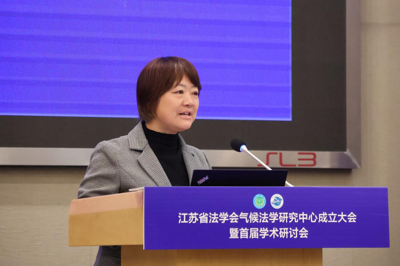 朱大梅代表气候法学研究中心发言,她表示中心今后将着力深化理论研究,聚焦气候变化法律与政策前沿问题,开展系统性、前瞻性的理论探索;同时,服务地方经济社会发展,为地方政府决策、企业转型及公众参与提供法律咨询与服务,并培育具备国际视野、创新精神和实践能力的高素质气候法学人才。