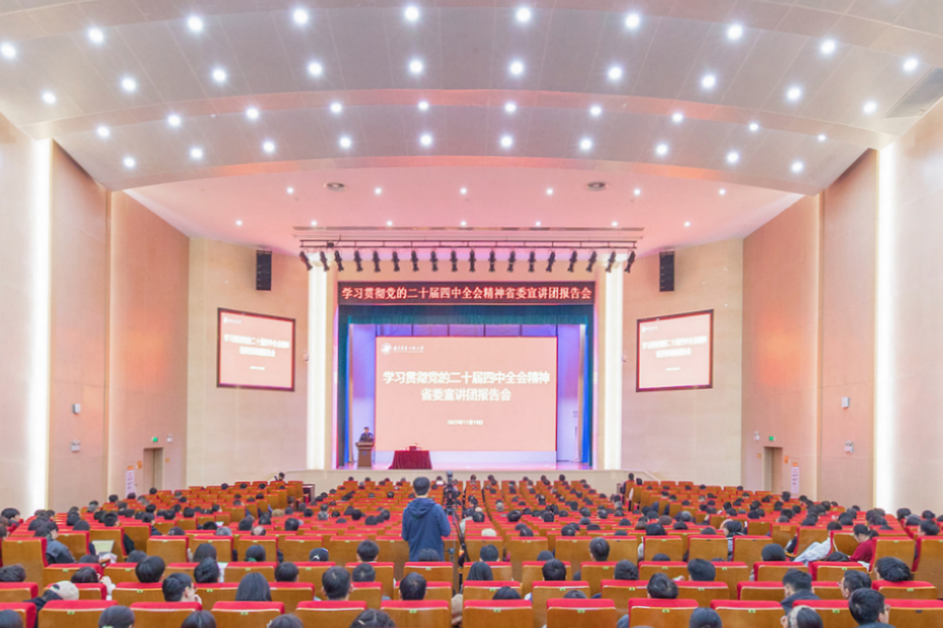 11月19日下午,学习贯彻党的二十届四中全会精神省委宣讲团报告会在我校风云剧场举行。省委宣讲团成员、中共江苏省委党校党史党建教研部主任张加华教授作专题宣讲报告。校党委书记尚洪波主持报告会。