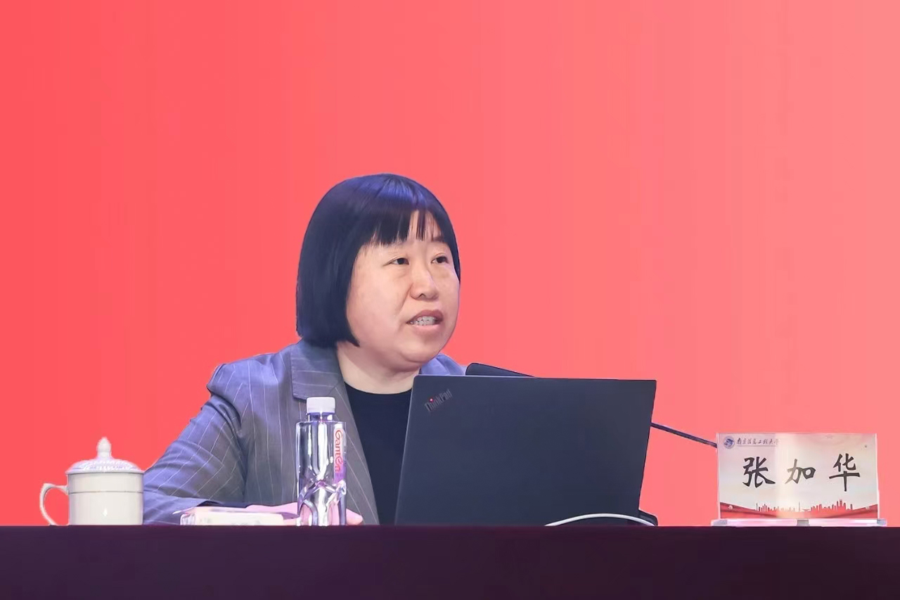在解读《建议》核心内容时,张加华教授重点围绕“高质量发展”“科技创新”“人才强国”“共同富裕”等关键词,结合江苏“经济大省挑大梁”的光荣使命与高等教育使命,进行了系统阐释。她强调,要把学习贯彻全会精神同学习领会习近平新时代中国特色社会主义思想结合起来,要系统把握、融会贯通,紧密结合思想和工作实际,努力把学习成效转化为推动学校高质量发展的具体实践。