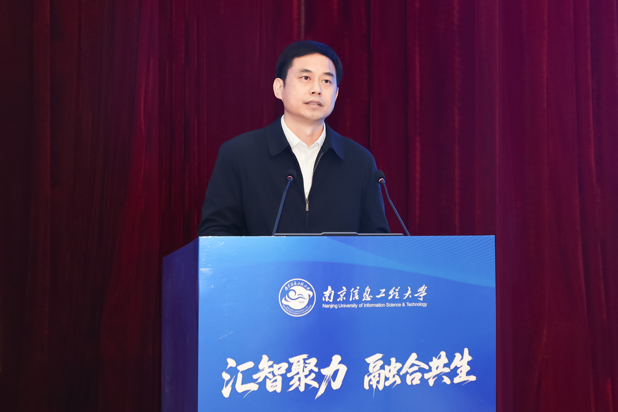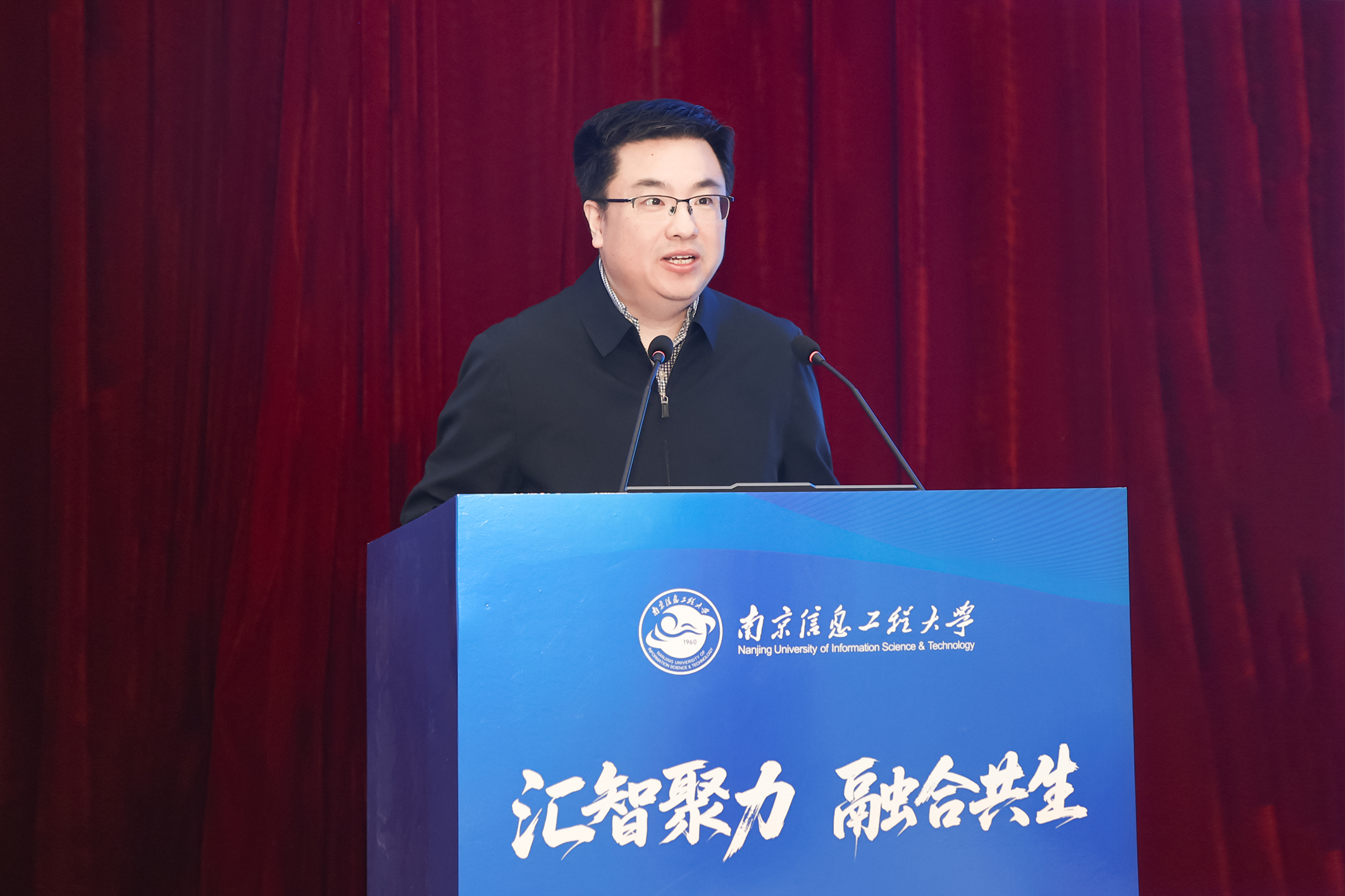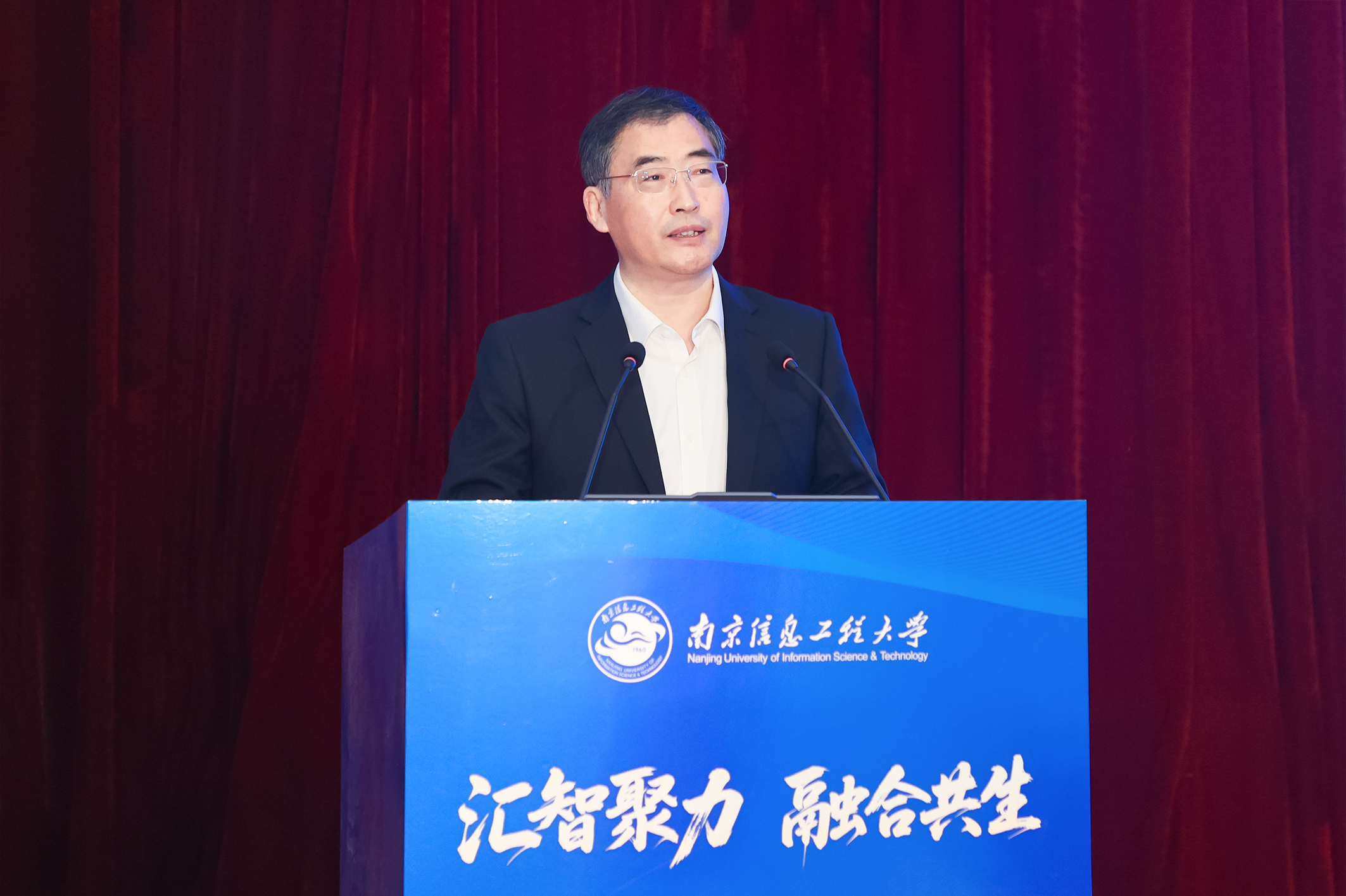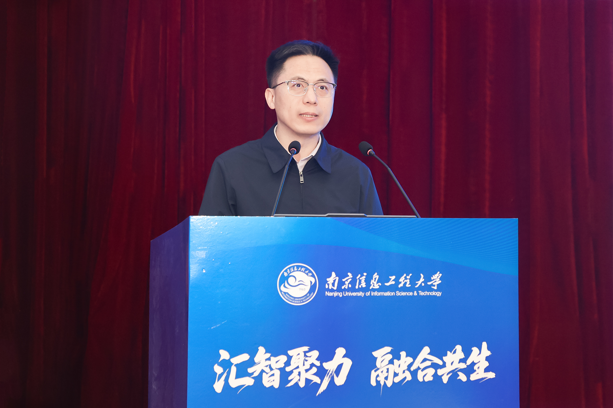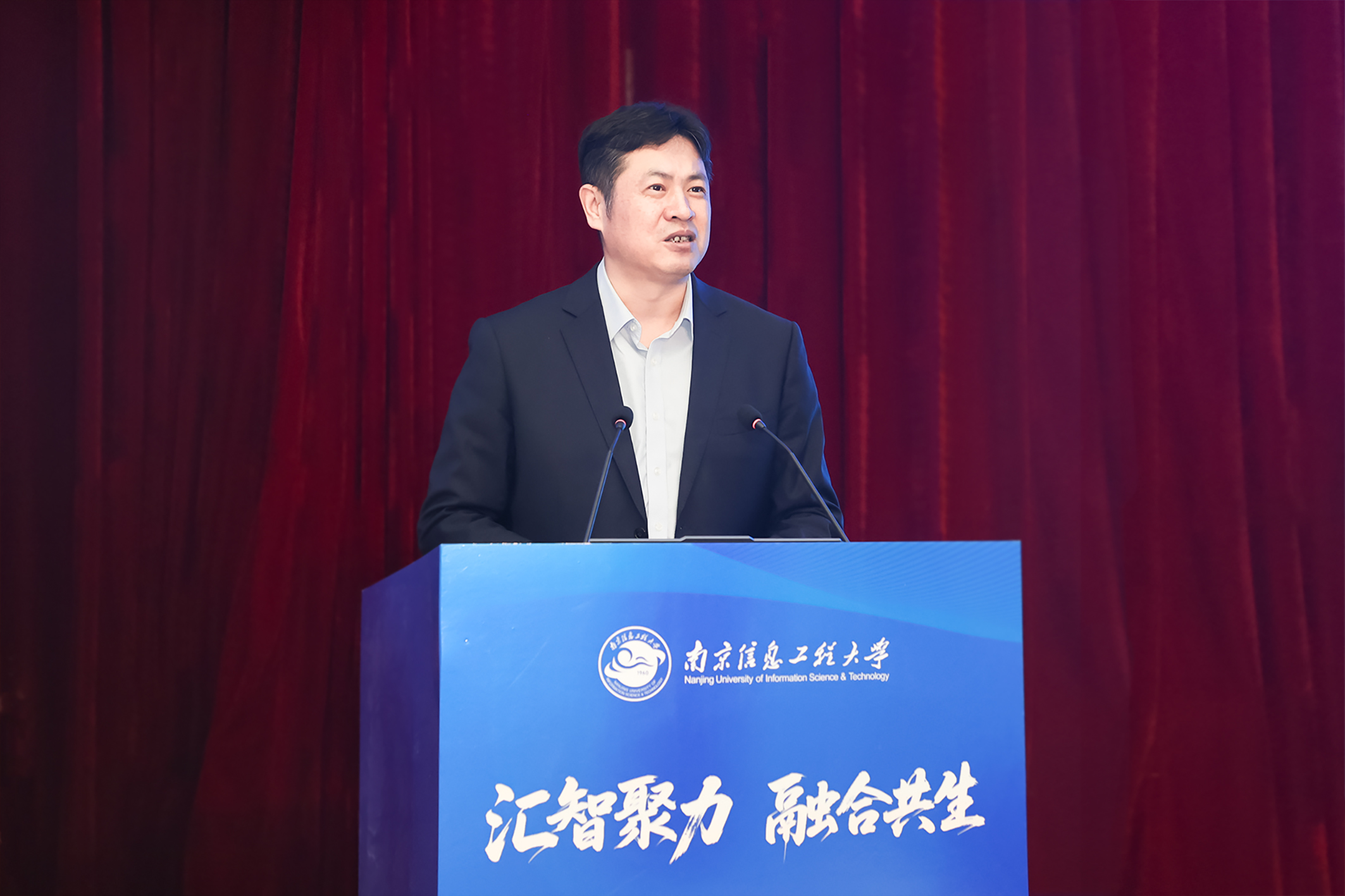 中国气象局人事司司长王志华,江苏省南京江北新区党工委委员、管委会副主任陈文斌,江苏省教育厅研究生教育处处长金科以及来自中国气象局直属单位和全国各省局的48位主要负责领导出席会议。南京信息工程大学党委书记尚洪波、校长陈海山、副校长马嫣、刘佳等出席大会。会议由陈海山主持。