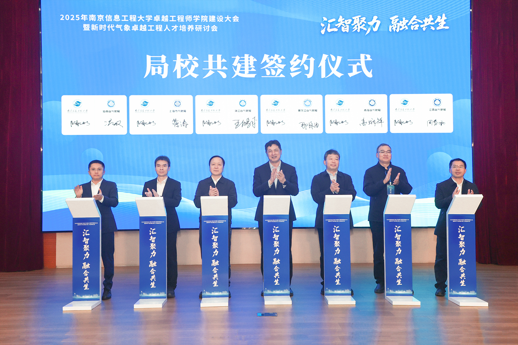 在局校共建签约环节,南京信息工程大学与黑龙江省气象局、上海市气象局、浙江省气象局、江西省气象局、海南省气象局、青海省气象局签署共建协议,进一步拓展气象人才培养与科技合作网络。