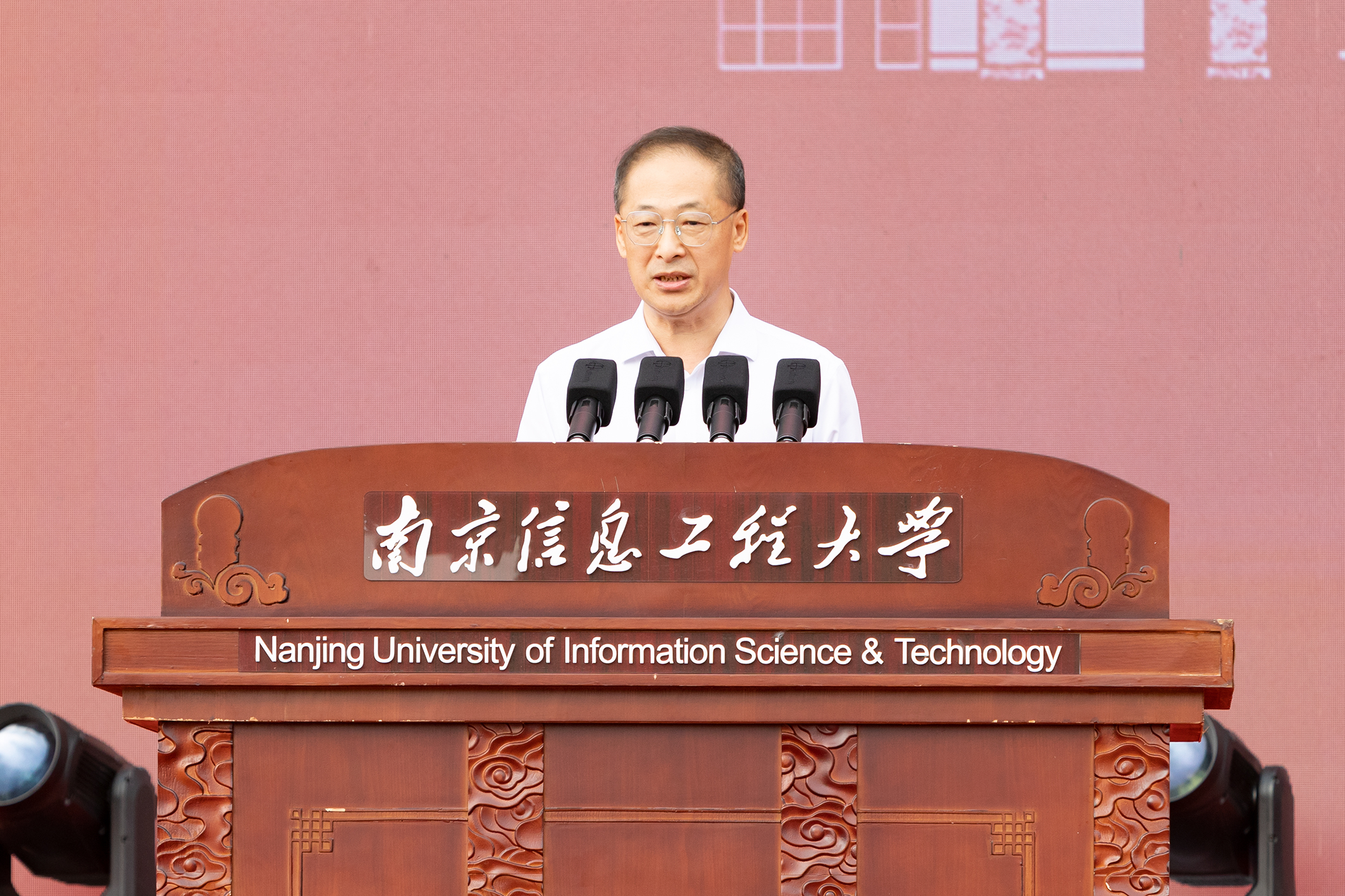校长陈海山首先代表全校师生员工和海内外校友,向2025级新生表示热烈欢迎,并向一路培育、陪伴他们的家长与老师致以崇高敬意。他回顾了学校坚守“为党育人、为国育才”的办学历程,学校学科实力强劲,大气科学入选国家“世界一流学科”,10个学科进入ESI全球前1%;科教资源优渥,拥有首批教育部“拔尖学生培养计划2.0”基地、入选首批“国优计划”项目,建有全国重点实验室2个;名师大家荟萃,拥有高素质教师队伍与国家级教学团队;校园处处是风景、处处有温暖。校园风景雅致、设施完善,致力于提供全方位的支持。